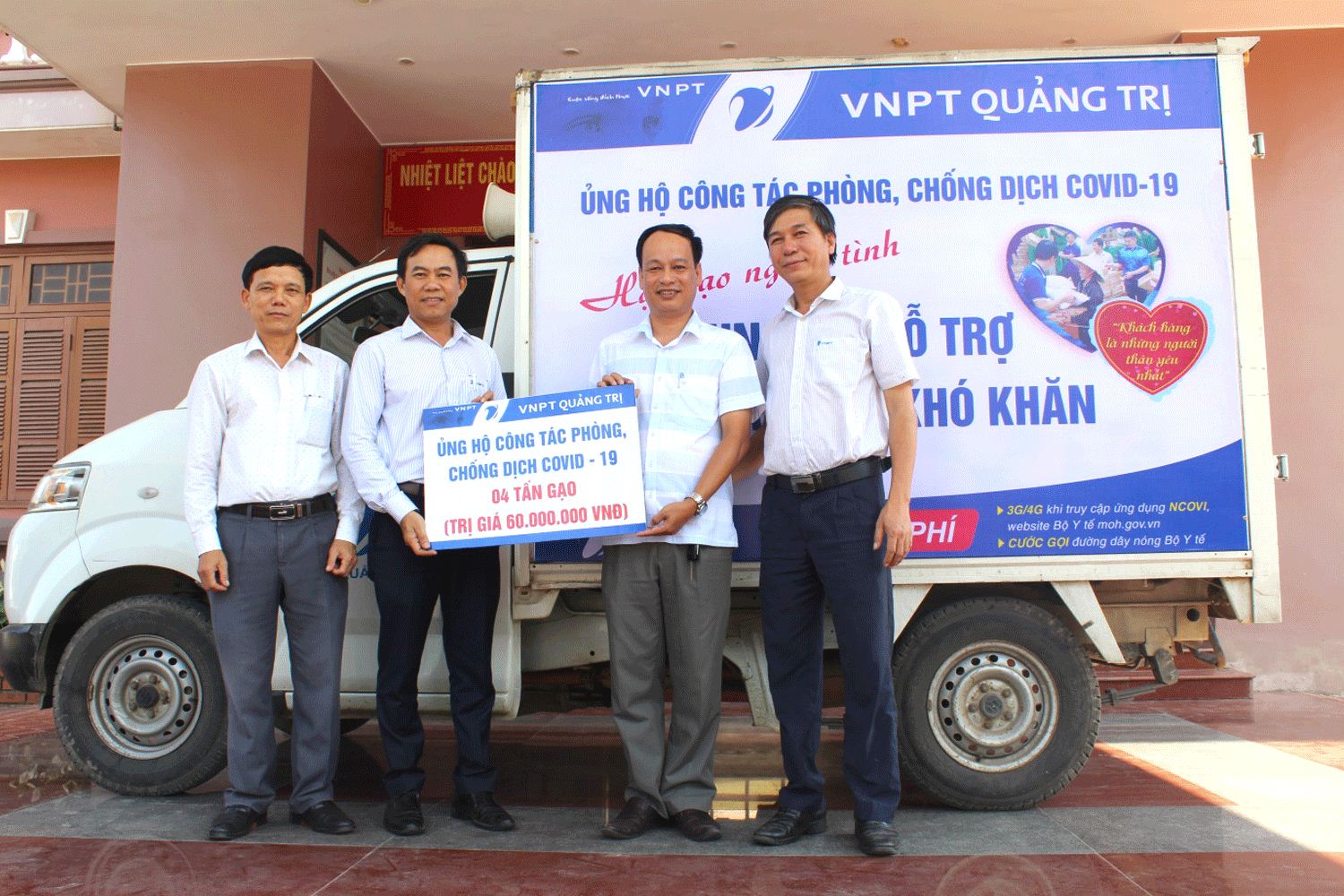 Ngoài ra, Chuyên môn và Công đoàn VNPT địa bàn Quảng Trị cũng phát động chương trình ủng hộ chống dịch bệnh COVID-19 đến toàn thể người lao động qua nhiều hình thức khác nhau như nhắn tin qua đầu số 1407 và ủng hộ bằng tiền mặt trong thời gian từ ngày 09/04/2020 đến ngày 15/04/2020. Kết quả sau hơn 1 tuần đã huy động được số tiền hơn 80 triệu đồng. Trong đó, VNPT Quảng Trị trao 1.500 suất gạo tương ứng 60.000.000 đồng cho những người dân khó khăn trên địa bàn tỉnh, đồng thời gửi đến Ủy ban Mặt trận các huyện số tiền ủng hộ qua tin nhắn 1407 với hơn 20.000.000 đồng.