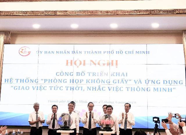 Hai giải pháp này sẽ được thành phố triển khai tại 24 Quận huyện và 31 Sở,Ban,Ngành của TP.HCM. Đây là bước tiến quan trọng của thành phố trong việc hướng đến một nền hành chính công hiện đại, dựa trên nền tảng công nghệ tiên tiến, phù hợp với đòi hỏi thực tiễn và xu hướng phát triển trên thế giới. Theo Bí thư Thành ủy TPHCM Nguyễn Thiện Nhân, mô hình chính quyền điện tử giúp công tác phục vụ người dân tốt hơn. Cán bộ làm việc cũng bớt mệt hơn. Hệ thống trên còn giúp tìm kiếm văn bản dễ dàng hơn, tiết kiệm được chi phí in ấn, giấy tờ… Ông đề nghị UBND TPHCM chậm nhất trong tháng 9 triển khai mô hình phòng họp không giấy cho các sở ban ngành, quận huyện, sau đó xuống cấp phường/xã.
