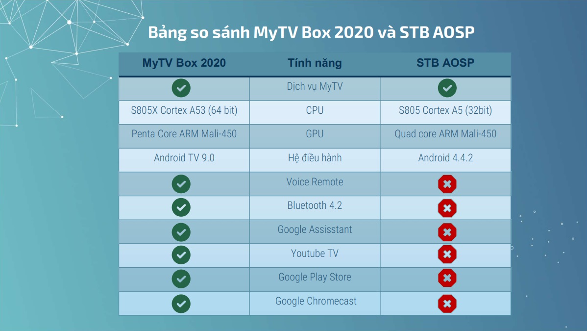 Bảng so sánh tính năng này cho thấy những điểm cải tiến nổi bật của MyTV Box 2020 so với chiếc box tiền nhiệm