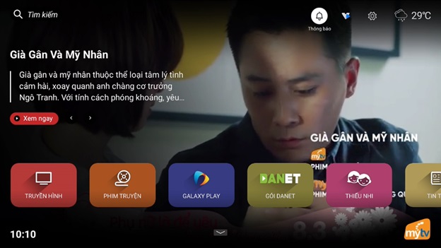 Giao diện trang chủ ứng dụng truyền hình MyTV