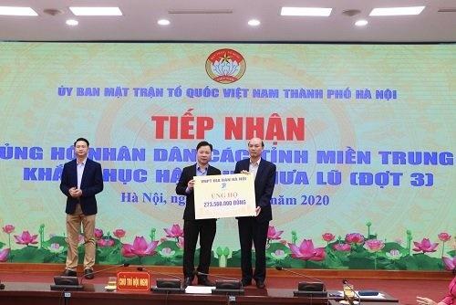 Chiều ngày 3/11/2020, VNPT địa bàn Hà Nội đã trao số tiền 273.560.000 VND cho Uỷ ban Mặt trận Tổ quốc Thành phố Hà Nội để gửi tới miền Trung thân yêu, góp phần cùng nhân dân miền Trung khắc phục những thiệt hại do lũ lụt gây ra.