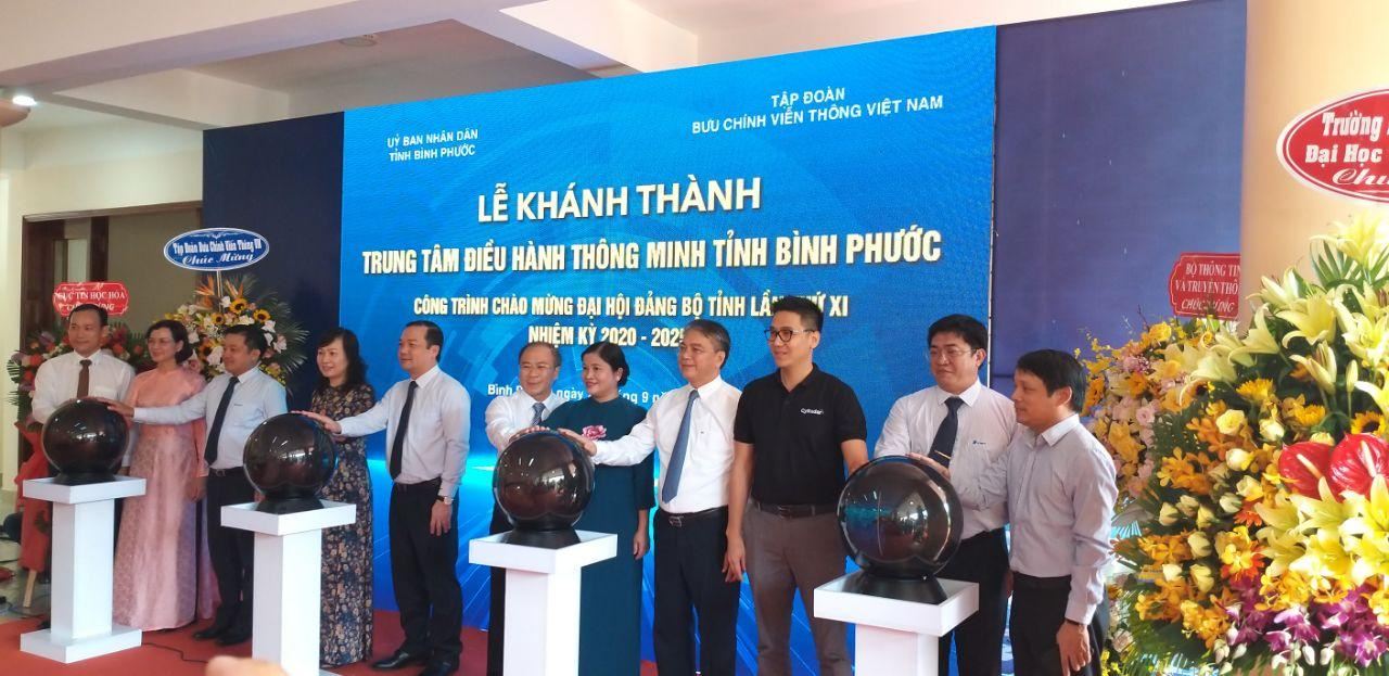 Lãnh đạo UBND tỉnh Bình Phước và lãnh đạo Tập đoàn VNPT nhấn nút khai trương Trung tâm IOC