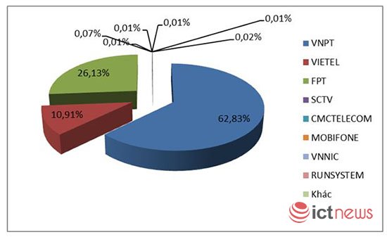 Tỉ lệ đóng góp của các đơn vị, doanh nghiệp vào kết quả triển khai IPv6 của Việt Nam.