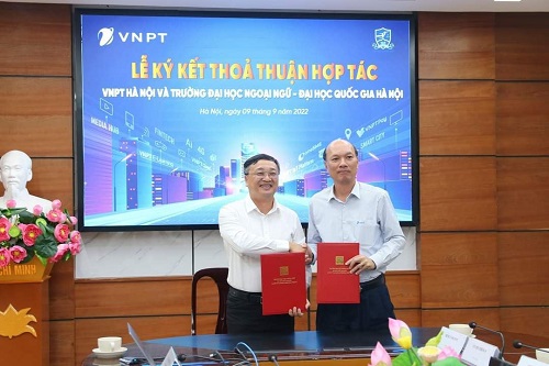 VNPT địa bàn Hà Nội (VNPT Hà Nội) và Trường Đại học Ngoại ngữ - Đại học Quốc gia Hà Nội vừa tổ chức lễ ký kết thỏa thuận hợp tác nhằm tăng cường năng lực và dịch vụ trong lĩnh vực giáo dục đào tạo và phát triển nguồn nhân lực; Phát triển về hạ tầng Công nghệ Thông tin (CNTT) và chuyển đổi số.