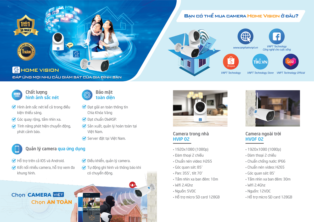 Bắt đầu từ ngày 1/3/2021, sản phẩm IP camera “Make in Viet Nam” mang thương hiệu Home Vision do VNPT Technology nghiên cứu, phát triển và sản xuất sẽ chính thức được mở bán trên Shopee, Tiki và Lazada. Đây là sản phẩm đầu tiên trong hệ sinh thái ONE Home được VNPT Technology đưa ra thị trường thông qua các sàn thương mại điện tử (TMĐT) lớn nhất Việt Nam.