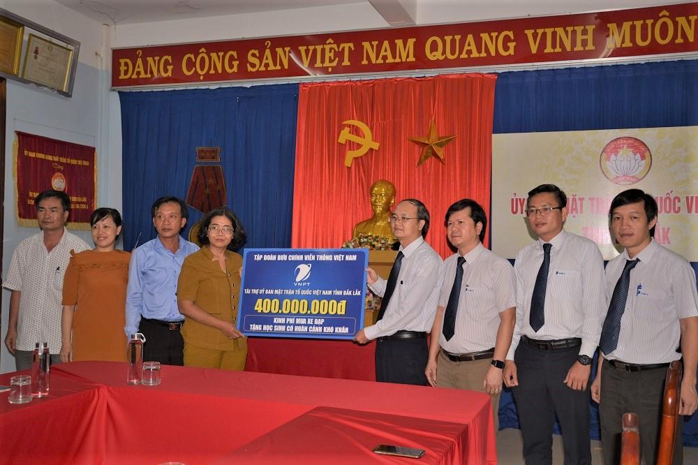 Dịp này, Tập đoàn Bưu chính Viễn thông Việt Nam tặng Đắk Lắk 400 triệu đồng. Toàn bộ số tiền này được Ủy ban MTTQ Việt Nam tỉnh mua 350 xe đạp tặng các em học sinh nghèo, học sinh vượt khó học giỏi tại các huyện vùng sâu, vùng xa trên địa bàn tỉnh.