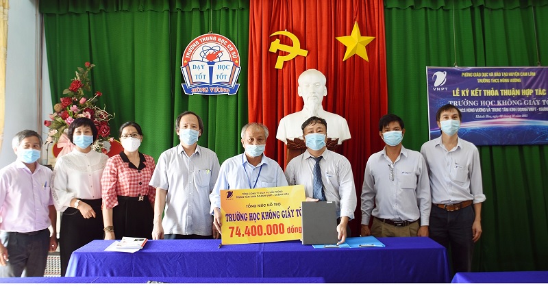 Được sự thống nhất của Sở Giáo dục đào tạo cho phép VNPT Khánh Hòa thí điểm triển khai ký thỏa thuận hợp tác về việc sử dụng giải pháp Trường học không giấy tờ (Mức Cơ bản) tại 06 trường THCS thuộc các địa bàn Nha Trang, Diên Khánh, Cam Ranh, Cam Lâm, Ninh Hòa và Vạn Ninh gồm các ứng dụng trong hệ sinh thái vnEdu: Hệ thống quản lý thông tin nhà trường vnEdu; Sổ liên lạc điện tử vnEdu; Ứng dụng vnEdu Teacher (dành cho giáo viên), ứng dụng vnEdu Connect (dành cho phụ huynh); Hệ thống quản lý thư viện, quản lý thiết bị của VNPT; Nền tảng học và thi trực tuyến VNPT Elearning; Hệ thống hội họp trực tuyến VNPT Meeting; Hệ thống Internet Wifi do VNPT cung cấp và Quản lý thanh toán học phí qua ví điện tử VNPT Pay.