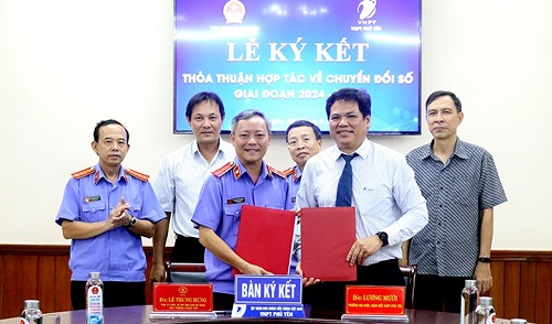 Cũng trong khoảng thời gian này, Viện KSND tỉnh và VNPT tại địa bàn tỉnh Phú Yên đã ký kết thỏa thuận hợp tác về chuyển đổi số trong ngành KSND giai đoạn 2024-2027. Viện trưởng Viện KSND tỉnh Lê Trung Hưng và Giám đốc VNPT Phú Yên Lương Mười đồng chủ trì buổi lễ.