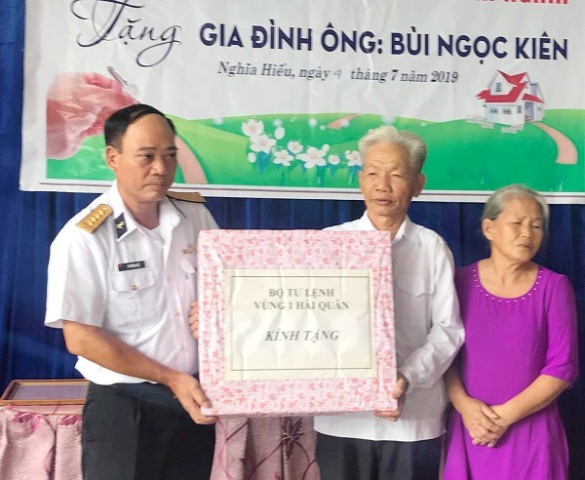 Sau hơn 3 tháng khởi công và xây dựng, sáng 4/7, Vùng 1 Hải Quân phối hợp với VNPT Nghệ An tổ chức lễ cắt băng khánh thành và bàn giao nhà tình nghĩa cho gia đình CCB Bùi Ngọc Kiên trú tại xóm Lê Lai, xã Nghĩa Hiếu.