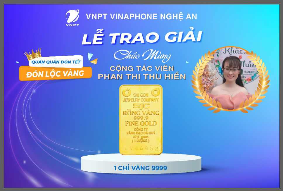 🏅🏅🏅 Tháng 03/2023 Trung tâm kinh doanh VNPT Nghệ An Trao thưởng cho 04 điểm ủy quyền và 01 CTV XHH đạt điều kiện chương trình QUÁN QUÂN ĐÓN TẾT - ĐÓN LỘC VÀNG 01 chỉ vàng SJC 9999 hoặc Doji/giải (trị giá ~6,5triệu/giải) thuộc các đơn vị Vùng Vinh, Nghĩa Đàn, Anh Sơn, Thanh Chương, Đô Lương