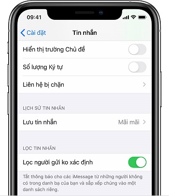 Để lọc iMessage, vào phần Cài đặt > Tin nhắn và bật Lọc người gửi không xác định.
