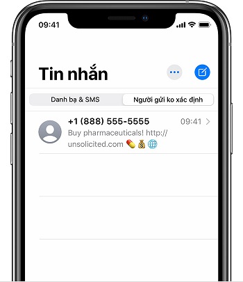 Trong Tin nhắn, bạn sẽ thấy một tab mới có tên Người gửi không xác định nhưng bạn sẽ không nhận được thông báo về iMessage do những người này gửi.