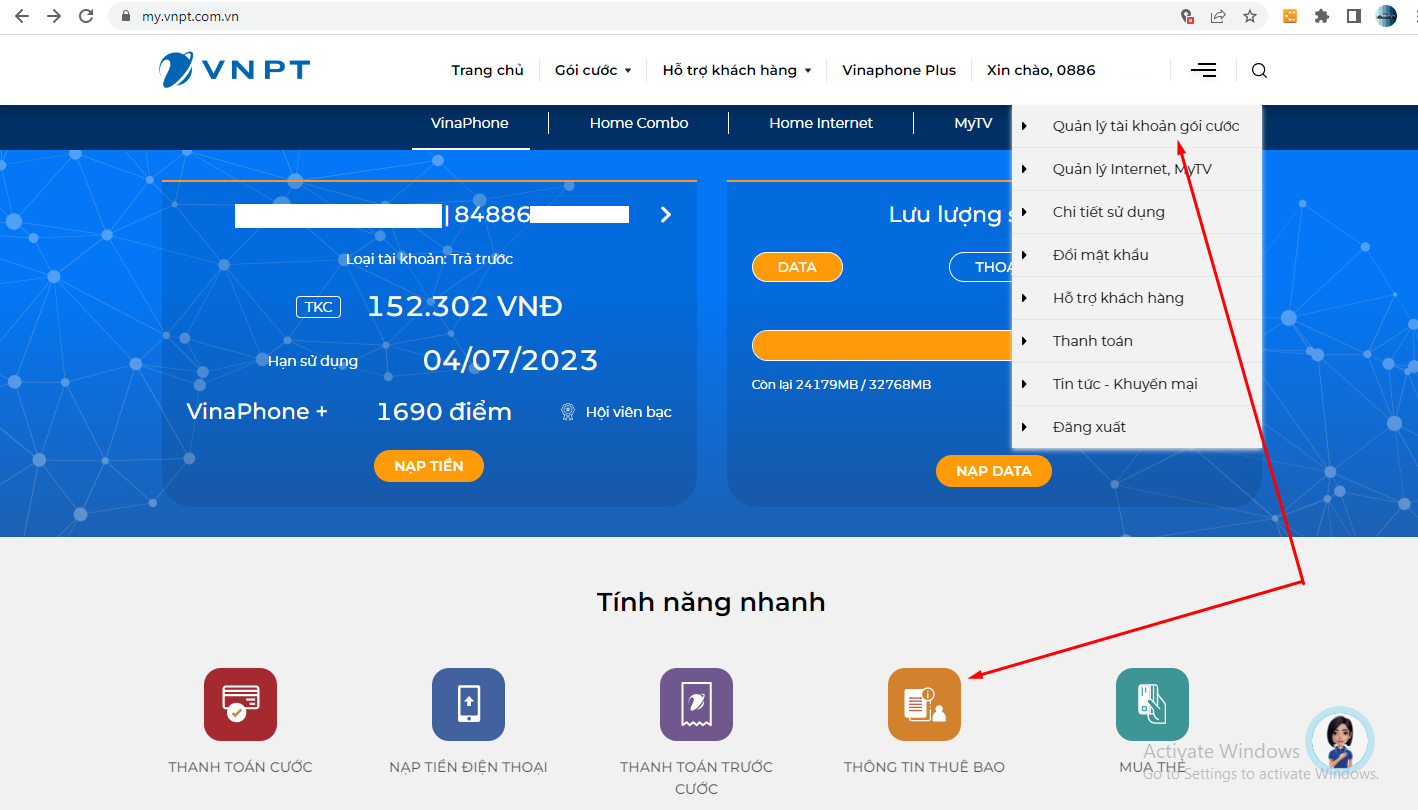 Cách 2: Kiểm tra thông tin trên web http://my.vnpt.com.vn