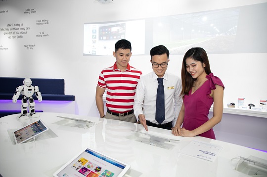 Khách hàng đang tìm hiểu giải pháp VNPT HIS tại showroom của VNPT