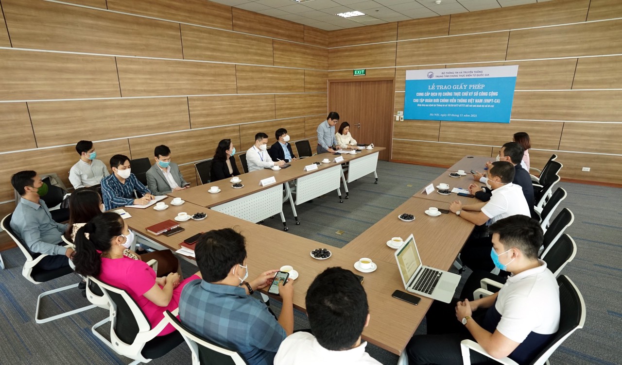 Ngày 3/11, Bộ TT&TT vừa chính thức trao giấy phép cung cấp dịch vụ chứng thực chữ ký số công cộng, bao gồm mô hình ký số từ xa (VNPT-SmartCA) cho Tập đoàn Bưu chính Viễn thông Việt Nam.