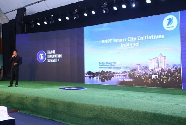 Ông Nguyễn Đức Kiên - GĐ Chiến lược, Cty VNPT IT - Giới thiệu giải pháp SmartCity tại Diễn đàn khởi nghiệp Sáng tạo Hà Nội 2019