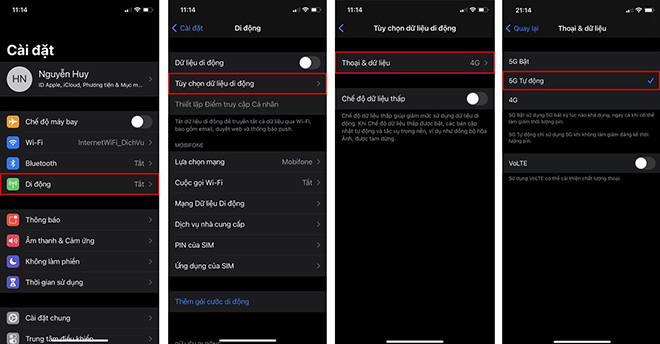 - - Bước 2: Bật 5G trên thiết bị có hỗ trợ nhận sóng 5G để sử dụng.