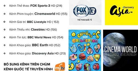Nhóm kênh quốc tế gồm 45 kênh. Danh sách cụ thể như sau: