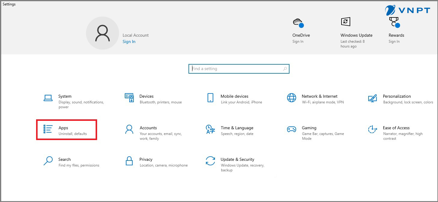 - Bước 1: Vào Settings (nhấn tổ hợp phím Windows + I).