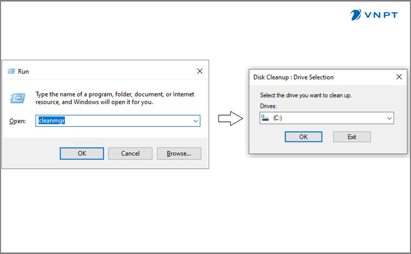 Các tệp tạm thời và file rác lưu trữ trên máy tính lâu ngày sẽ chiếm dụng bộ nhớ, làm giảm hiệu suất hoạt động. Cách khắc phục máy tính bị chậm là sử dụng các công cụ như Disk Cleanup hoặc các phần mềm dọn dẹp khác để xóa các file không cần thiết. Để thực hiện, bạn bấm kết hợp phím Windows + R và gõ cleanmgr; chọn ổ đĩa cần dọn dẹp và bấm OK để hệ thống quét và xóa file rác.