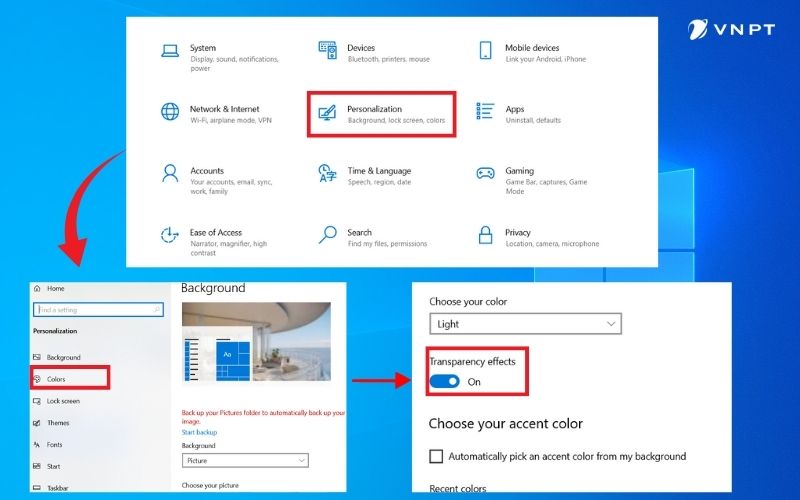 Thanh taskbar là một trong những thành phần quan trọng giúp người dùng tương tác với hệ điều hành Windows 10. Việc làm trong suốt thanh taskbar Win 10 giúp giao diện mới mẻ và không gian làm việc thoáng hơn. Bài viết hôm nay của VNPT sẽ giúp bạn tìm hiểu các cách đơn giản và hiệu quả để thực hiện điều này.