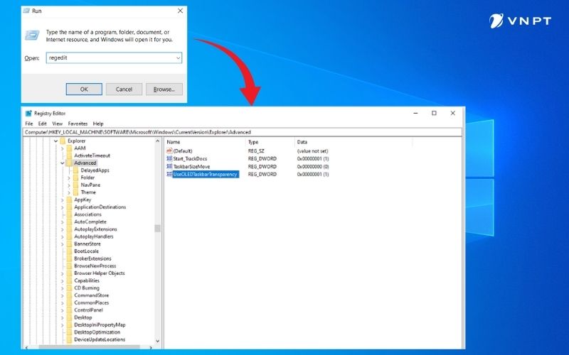 Các bước thực hiện làm trong suốt thanh taskbar Win 10 với Registry Editor