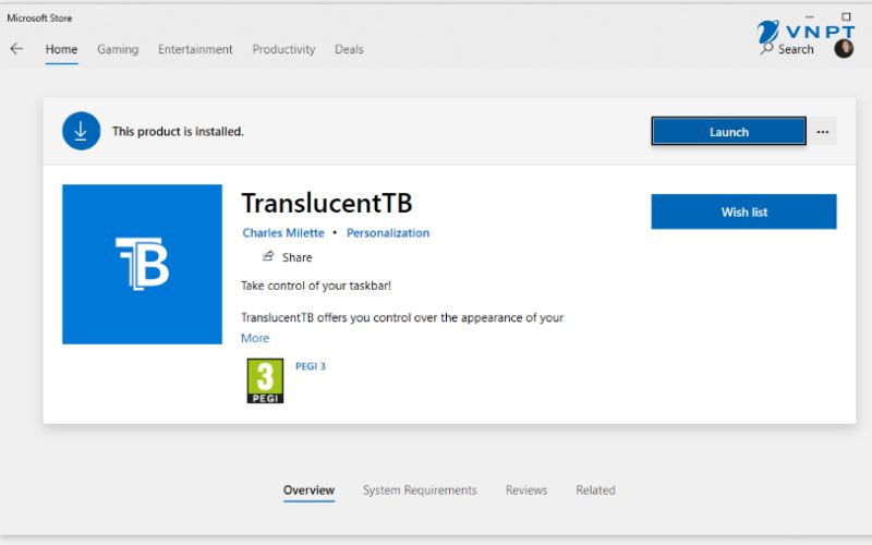 Bước 1: Tải và cài đặt TranslucentTB từ Microsoft Store hoặc trang GitHub chính thức.
