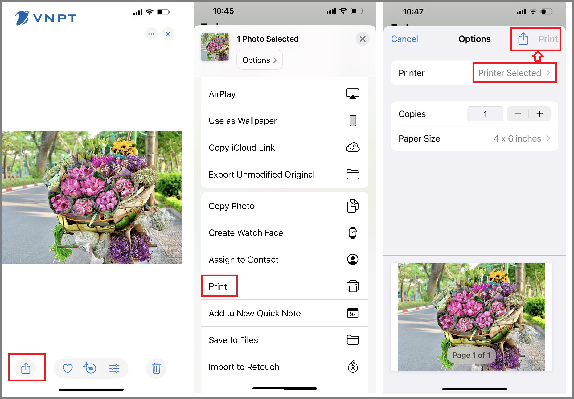 - Bước 3: Bấn ấn nút Share, sau đó chọn Print và tìm máy in đã kết nối