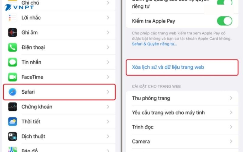 Xóa dữ liệu trình duyệt Safari