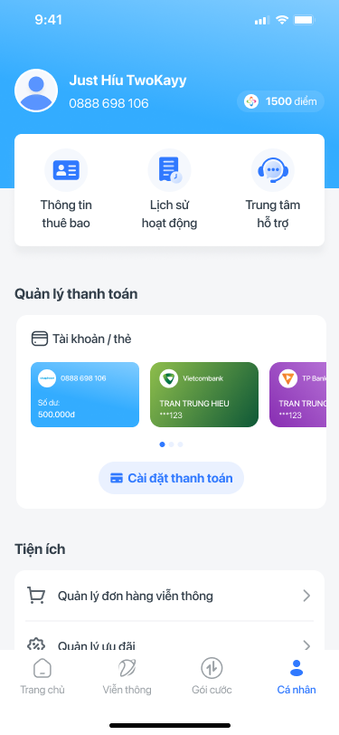 2. Chọn mục Thông tin thuê bao hoặc tab Cá nhân, mục Thông tin tài khoản |