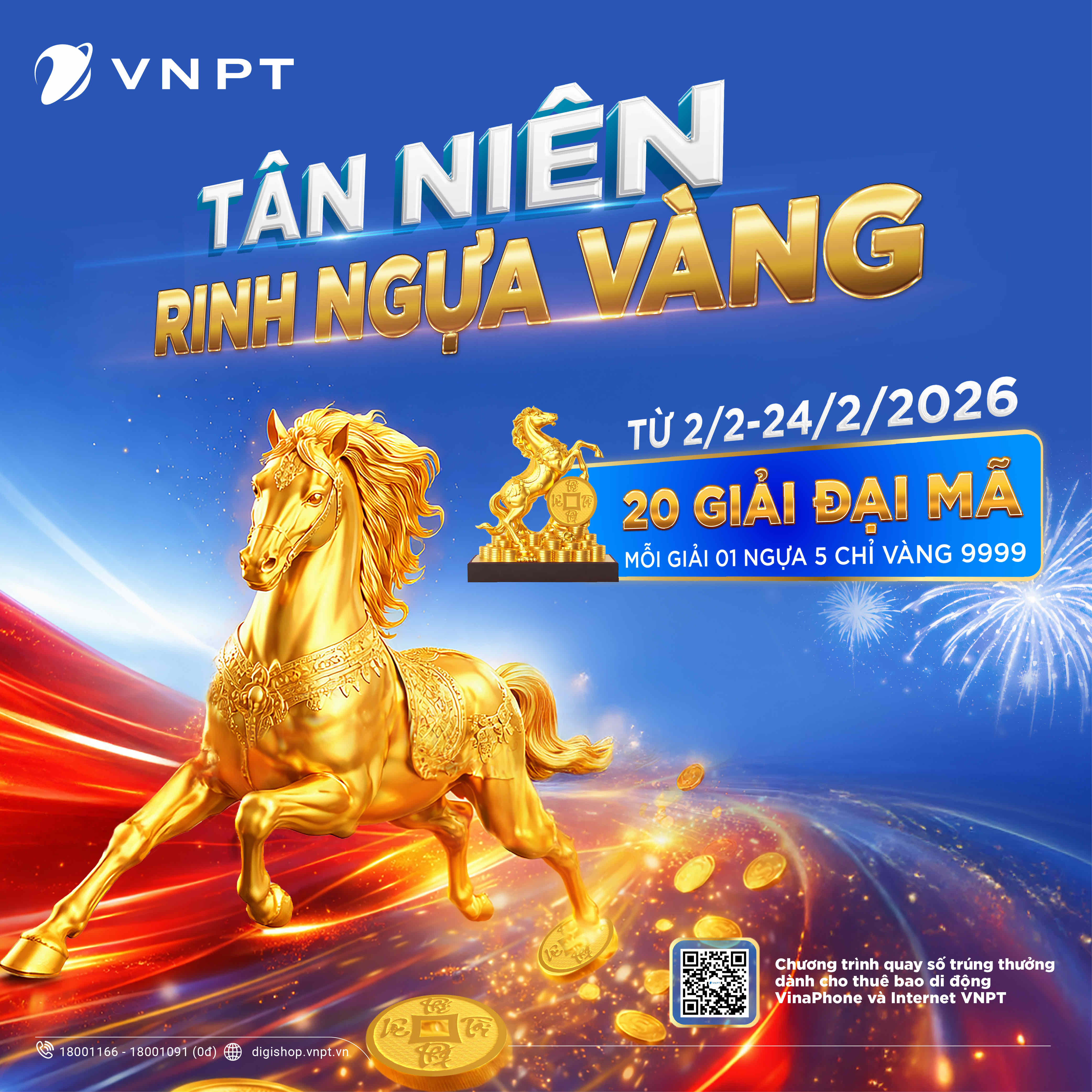 Những ngày đầu năm mới luôn là thời điểm của niềm hy vọng và những khởi đầu tốt đẹp. Hòa chung không khí rộn ràng của xuân Bính Ngọ 2026, VNPT chính thức triển khai chương trình khuyến mại quy mô lớn mang tên “Tân Niên Rinh Ngựa Vàng” trên phạm vi toàn quốc. Đây không chỉ là lời tri ân sâu sắc gửi đến hàng triệu khách hàng đã đồng hành cùng mạng di động VinaPhone và dịch vụ Internet VNPT, mà còn là món quà may mắn với tổng giá trị giải thưởng lên đến gần 2 tỷ đồng, hứa hẹn mang lại một năm mới phát tài phát lộc cho khách hàng.