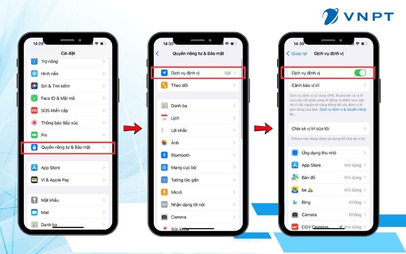 Dịch vụ vị trí trên iPhone hỗ trợ thiết bị sử dụng các mạng Wifi xung quanh, qua đó cải thiện độ chính xác trong kết nối. Tuy nhiên, tính năng này cũng có thể là nguyên nhân khiến iPhone không thể kết nối với Wi-Fi. Để tắt định vị, bạn có thể thực hiện theo các bước sau: