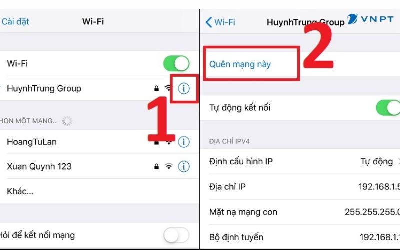 Quên mạng Wifi đang sử dụng cũng là một phương pháp hiệu quả để khắc phục tình trạng tại sao iPhone không bắt được Wifi. Cụ thể: