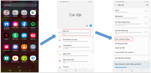 b) Hướng dẫn bật tính năng VoLTE trên điện thoại Samsung: