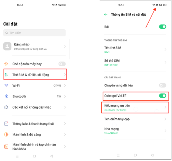 b) Hướng dẫn bật tính năng thoại chất lượng cao Hdcall-VoLTE: