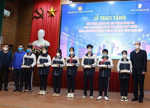 Tiếp đó, ngay đầu tháng 10/2021, VNPT Hà Nội đã là một trong những doanh nghiệp đầu tiên thực hiện cam kết tặng máy tính bảng trong chương trình “Sóng và máy tính cho em”. Trong khuôn khổ chương trình, VNPT Hà Nội đã đồng hành cùng Thành đoàn - Hội sinh viên Thành phố Hà Nội tổ chức trao tặng 40 thiết bị điện tử và sim 4G VinaPhone cho các em học sinh có hoàn cảnh khó khăn trên địa bàn Thành phố. Đây là những chiếc máy tính bảng đầu tiên của chương trình đã được VNPT Hà Nội trao tận tay cho các học sinh tại Hà Nội.